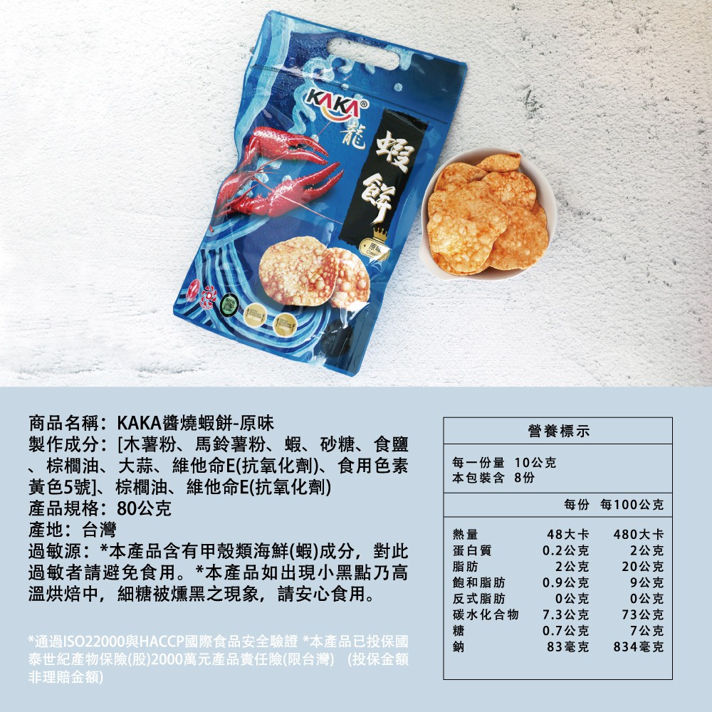 【蝦皮直營】KAKA 醬燒蝦餅 原味/辣味 大容量分享包80g 團聚零食 彭湃分享包