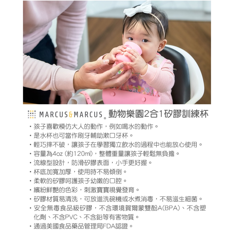 新款上市 加拿大 MARCUS&MARCUS 動物樂園2合1矽膠訓練杯 學習杯 水杯 漱口杯 訓練杯 矽膠(多款可選)