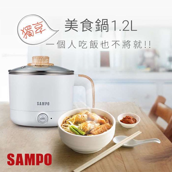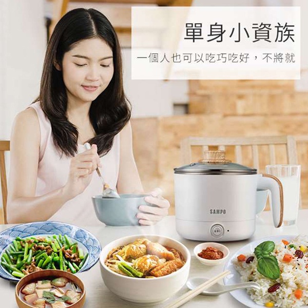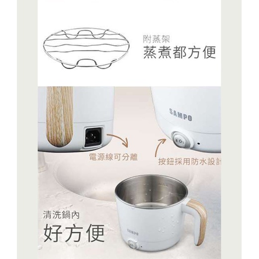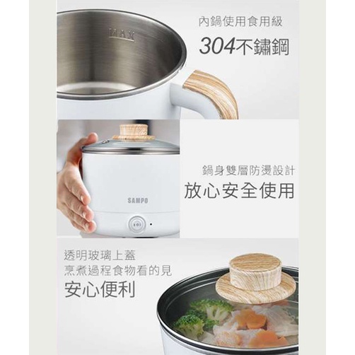 SAMPO聲寶 雙層防燙多功能快煮美食鍋/料理鍋/旅行鍋(附蒸架) 1.2L KQ-CA12D