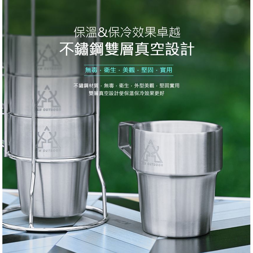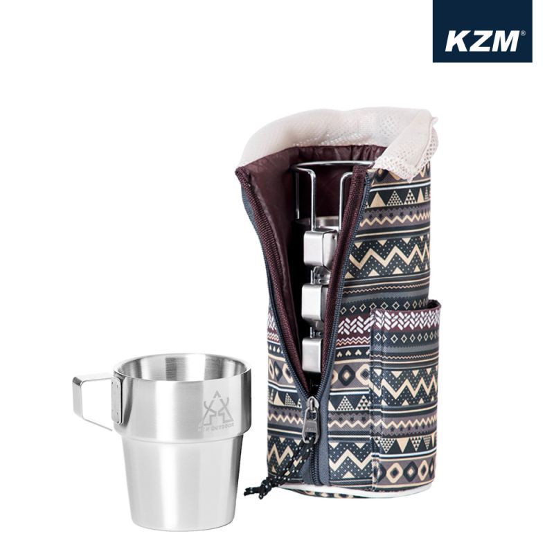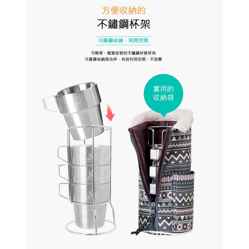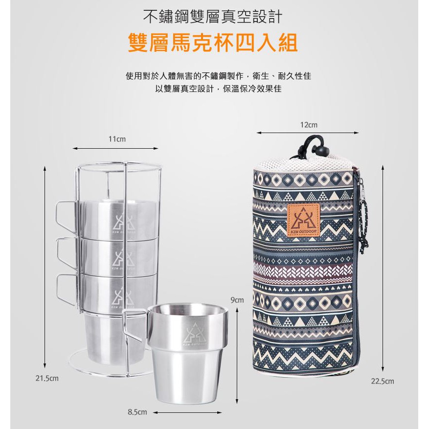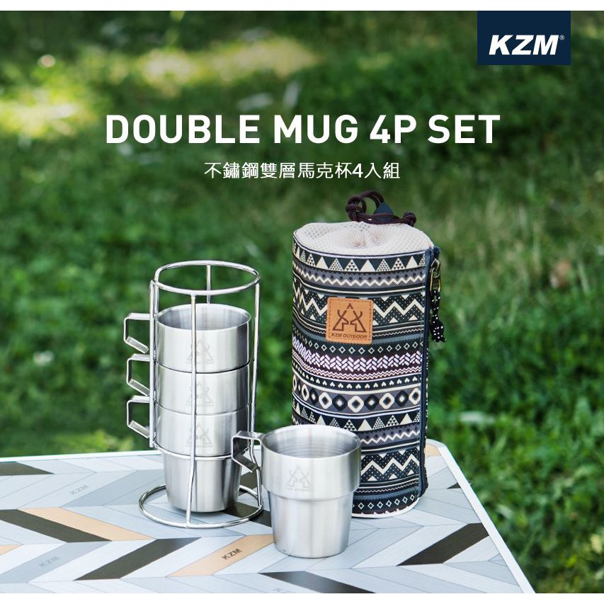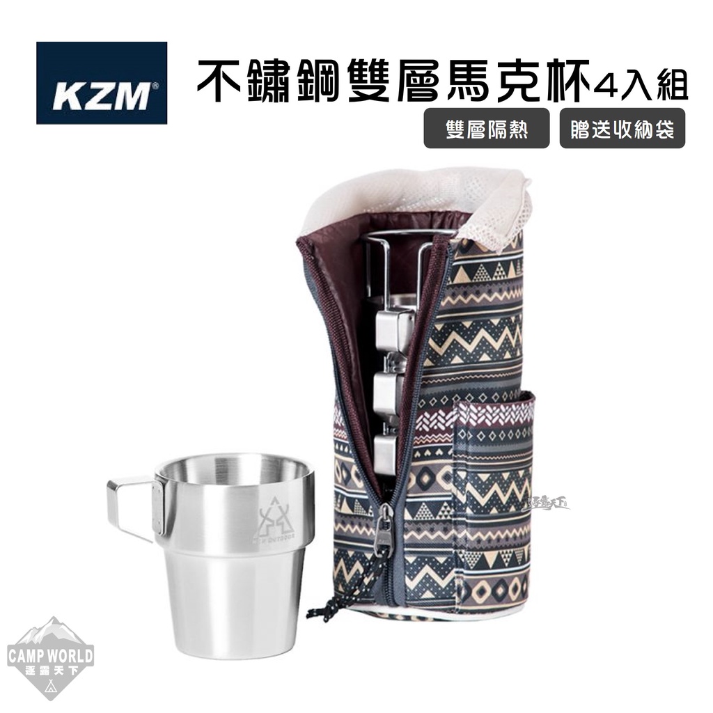 露營餐具 KAZMI KZM 不鏽鋼雙層馬克杯4入組 藍灰色 露營杯 隔熱杯 逐露天下