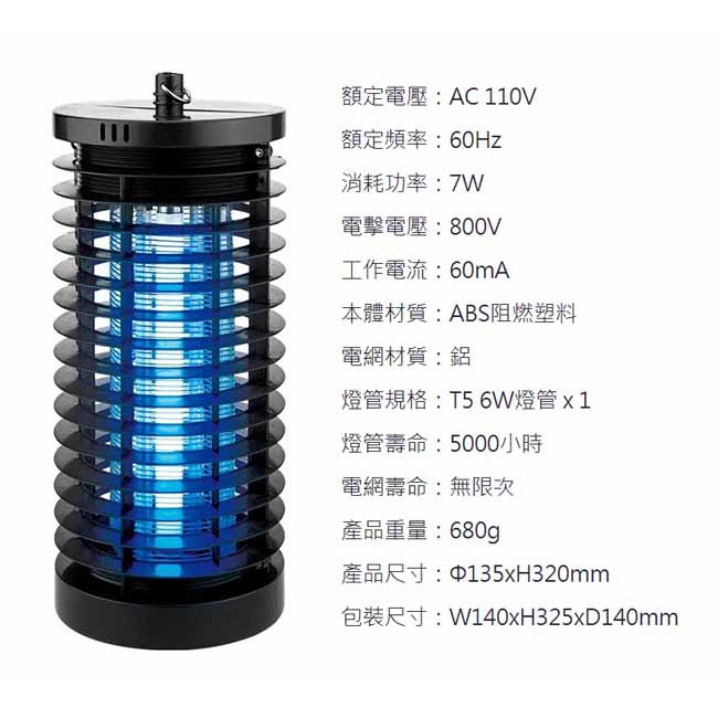 【KINYO】6W電擊式無死角UVA燈管捕蚊燈(KL-7061)吊環設計