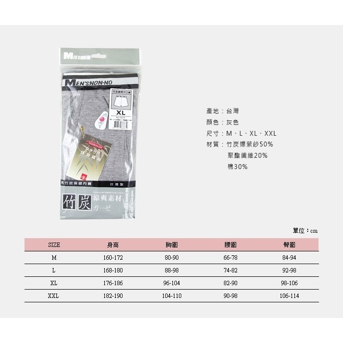 Nonno 竹炭纖維四角褲 開襟內褲 儂儂 四角平口褲 NO.8616 麥襪企業社