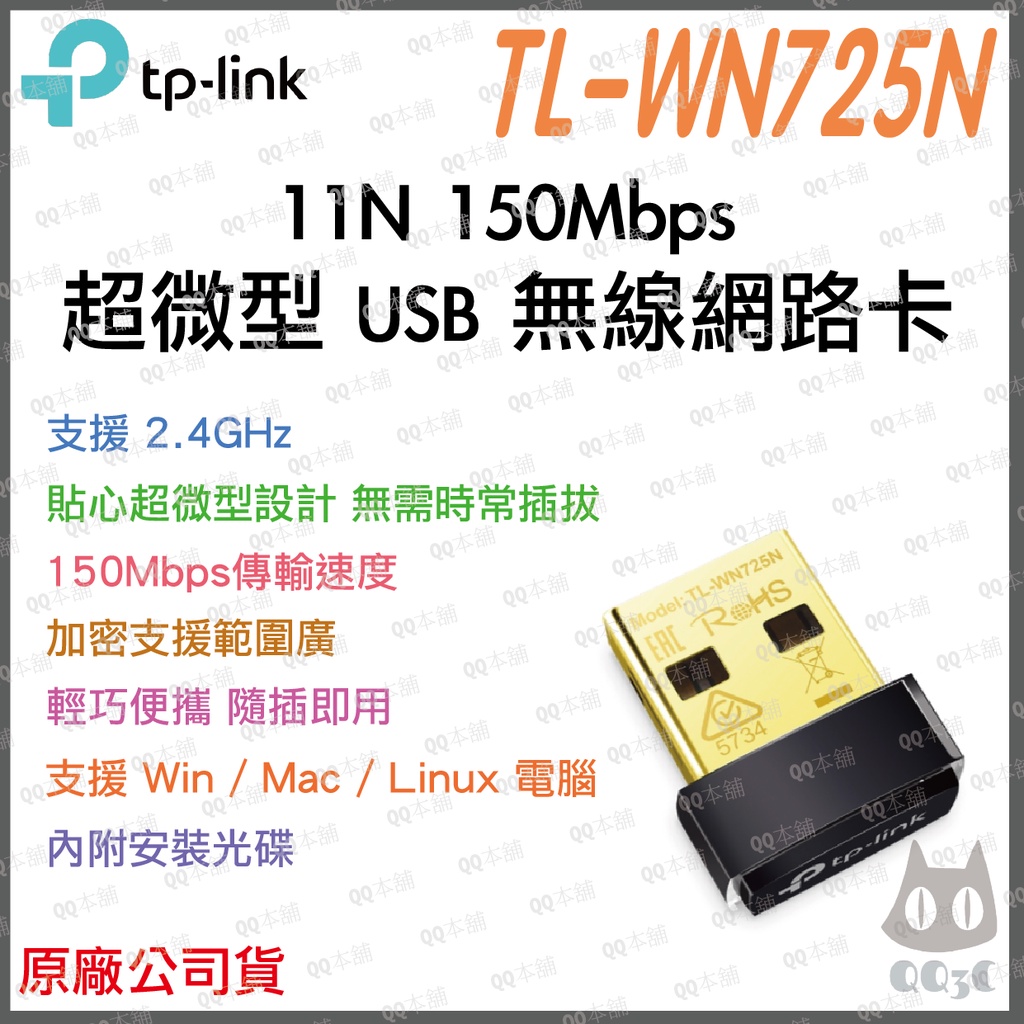 《 tp-link 原廠 公司貨 》TL-WN725N 超微型 11N 150Mbps USB 無線 網路卡 網卡