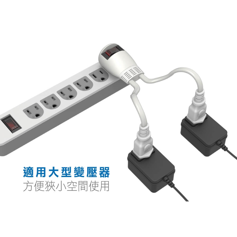 【威電 WEITIEN】 0.11m(11cm)過載斷電1開2座電源線組 延長線 CK2121 輕巧.適用大型變壓器