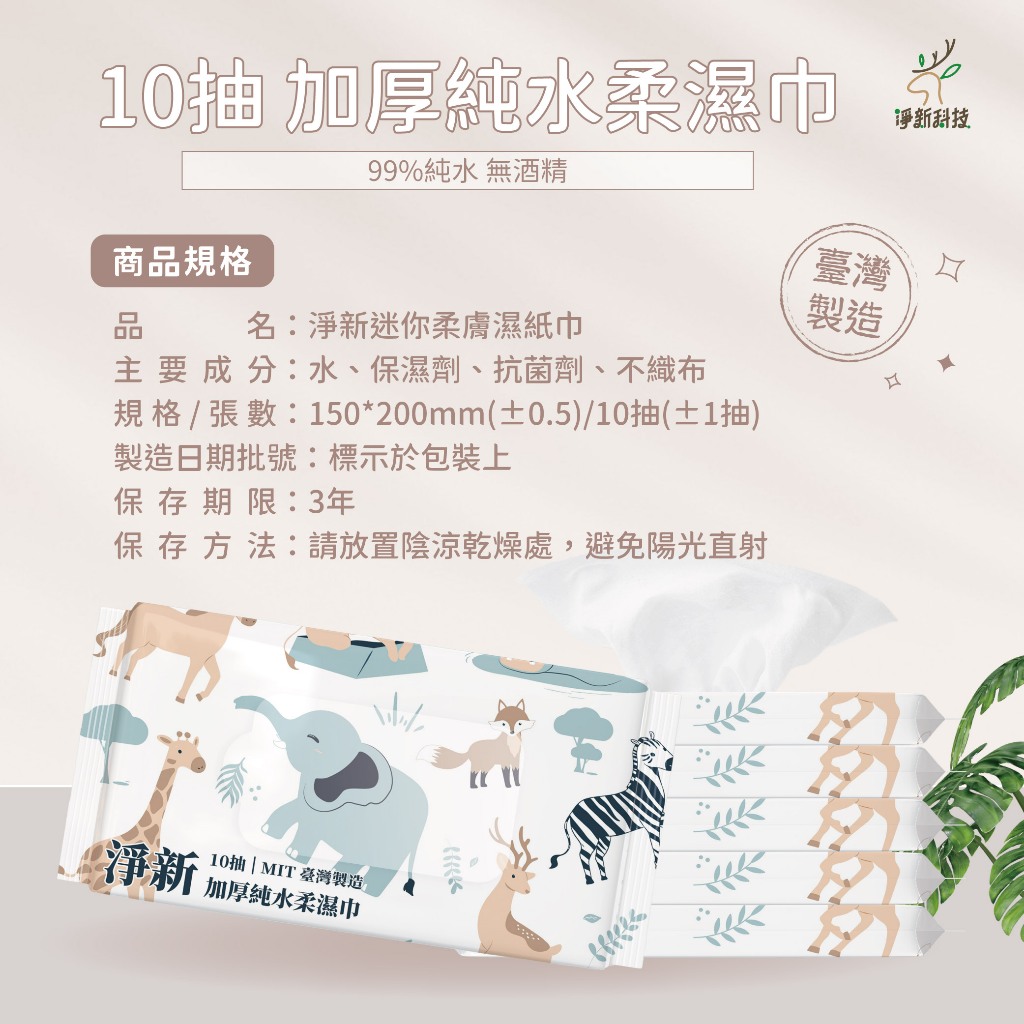 淨新 迷你濕紙巾 濕紙巾 10抽 加厚純水柔濕巾 純水濕紙巾 無香精濕紙巾 隨身濕紙巾 外出濕紙巾 淨新濕紙巾