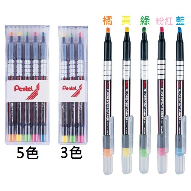 【含稅附發票】現貨彩色螢光筆S512飛龍牌Pentel 5色套裝組S512-5 3色S512-3飛龍文具批發512