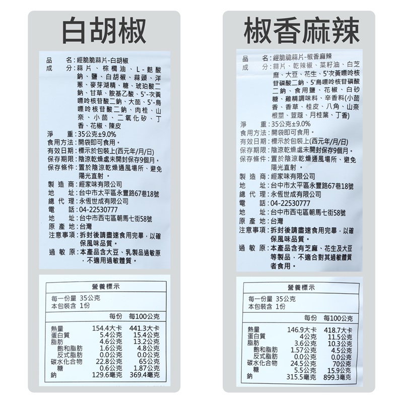 『口感酥脆!清爽調味』 經脆脆蒜片 白胡椒 椒香麻辣 大蒜 蒜片厚片 蔬果片 蒜頭 Crispy Ching