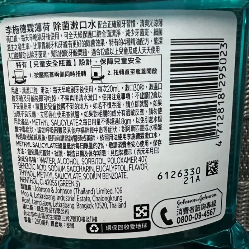 全新李施德霖漱口水250ml 綠茶全效護理薄荷健康亮白牙齦護理 櫻花蜜桃不含酒精除菌無酒精 500ml 750ml100