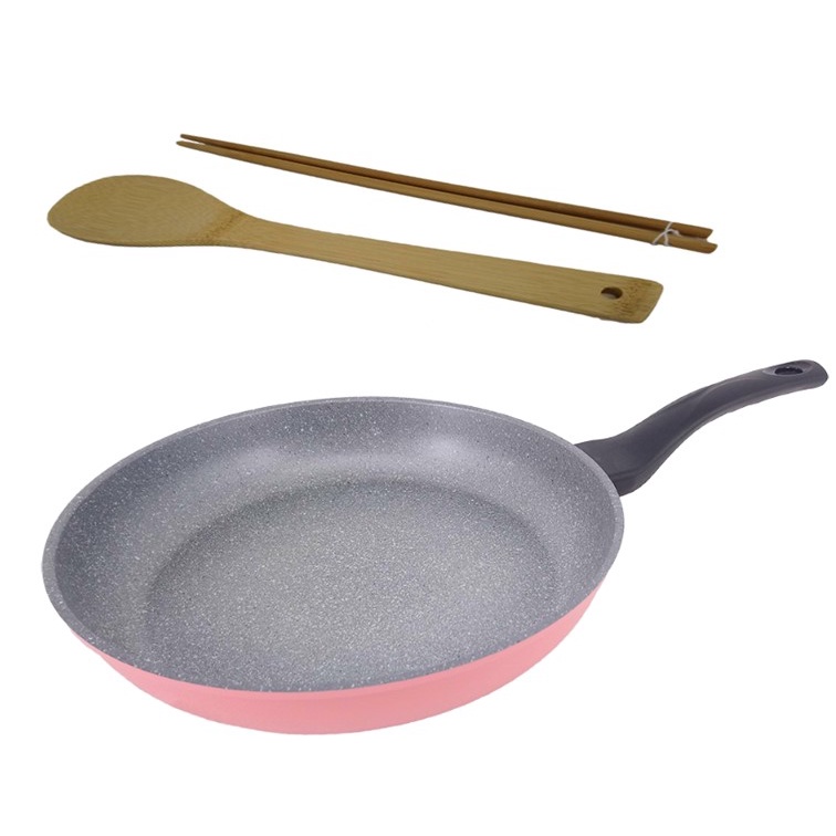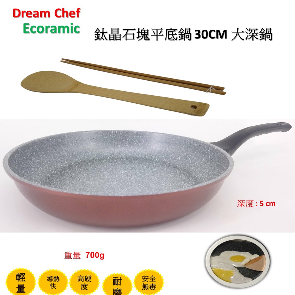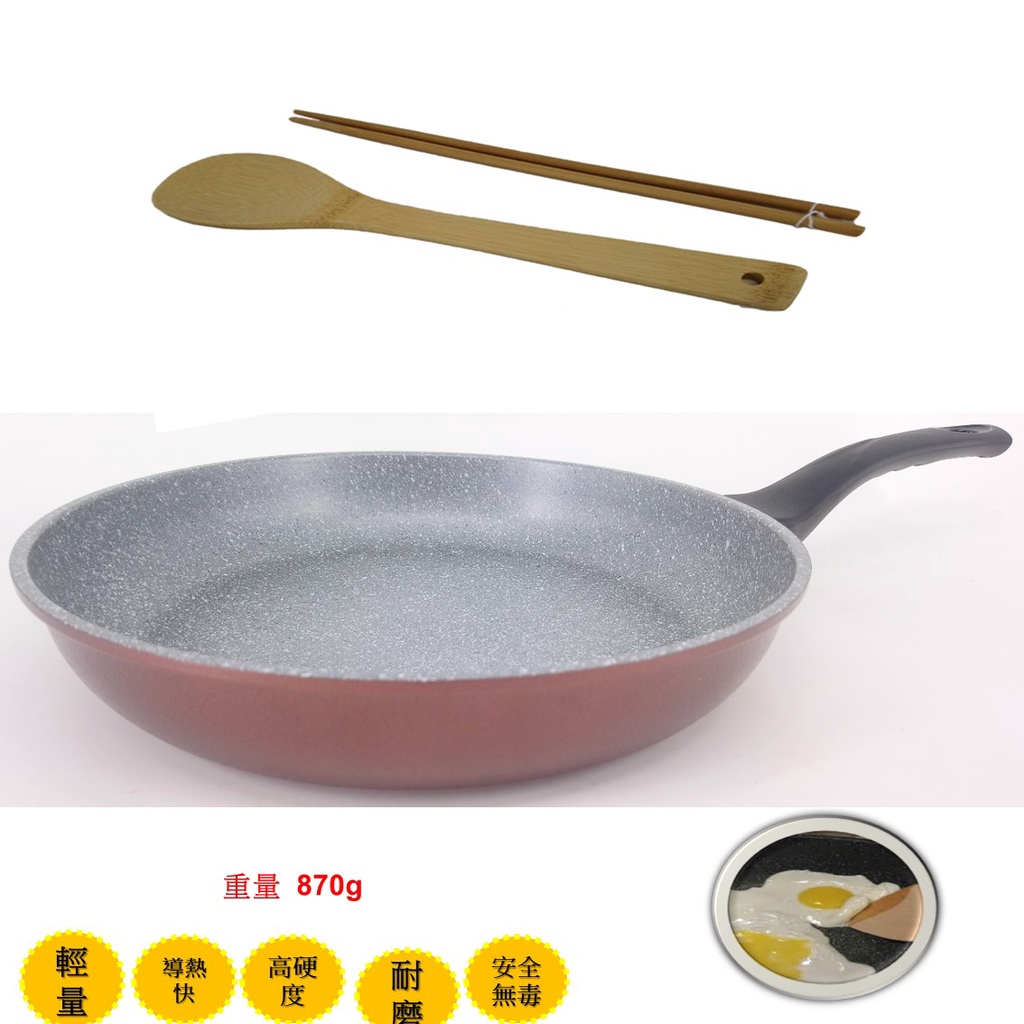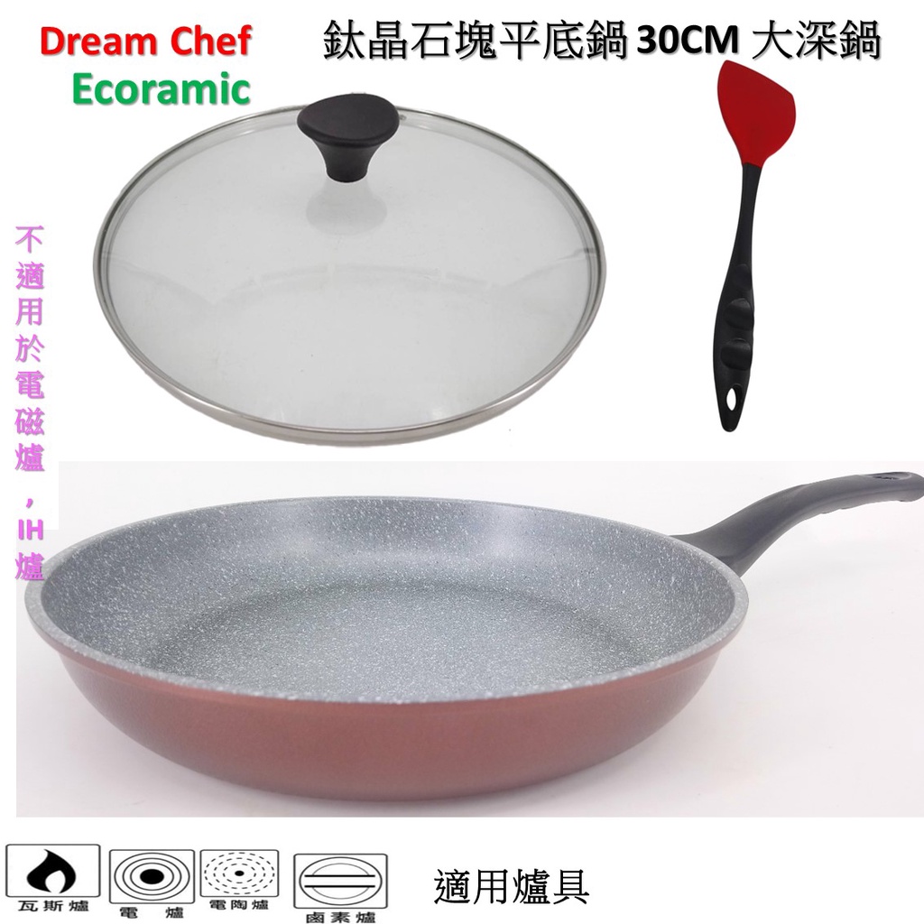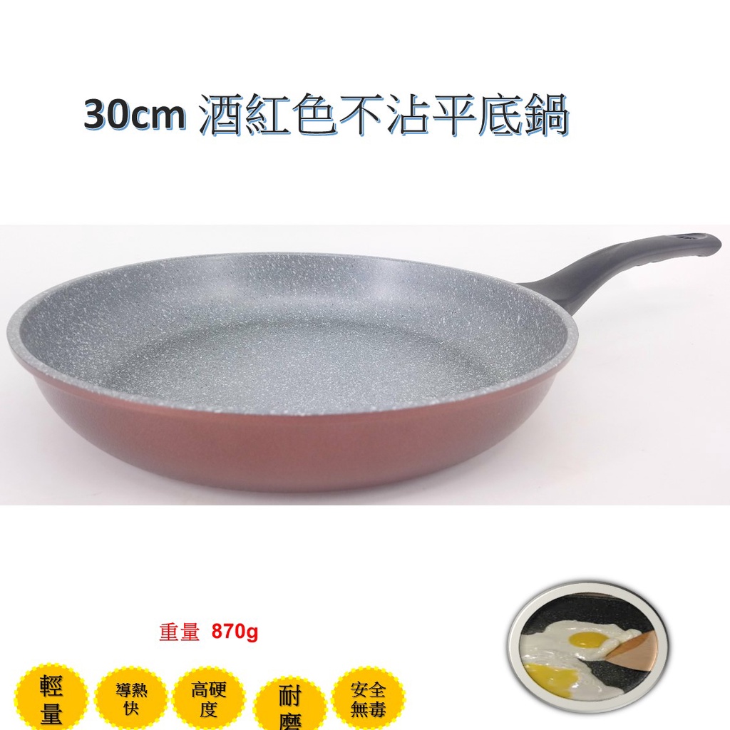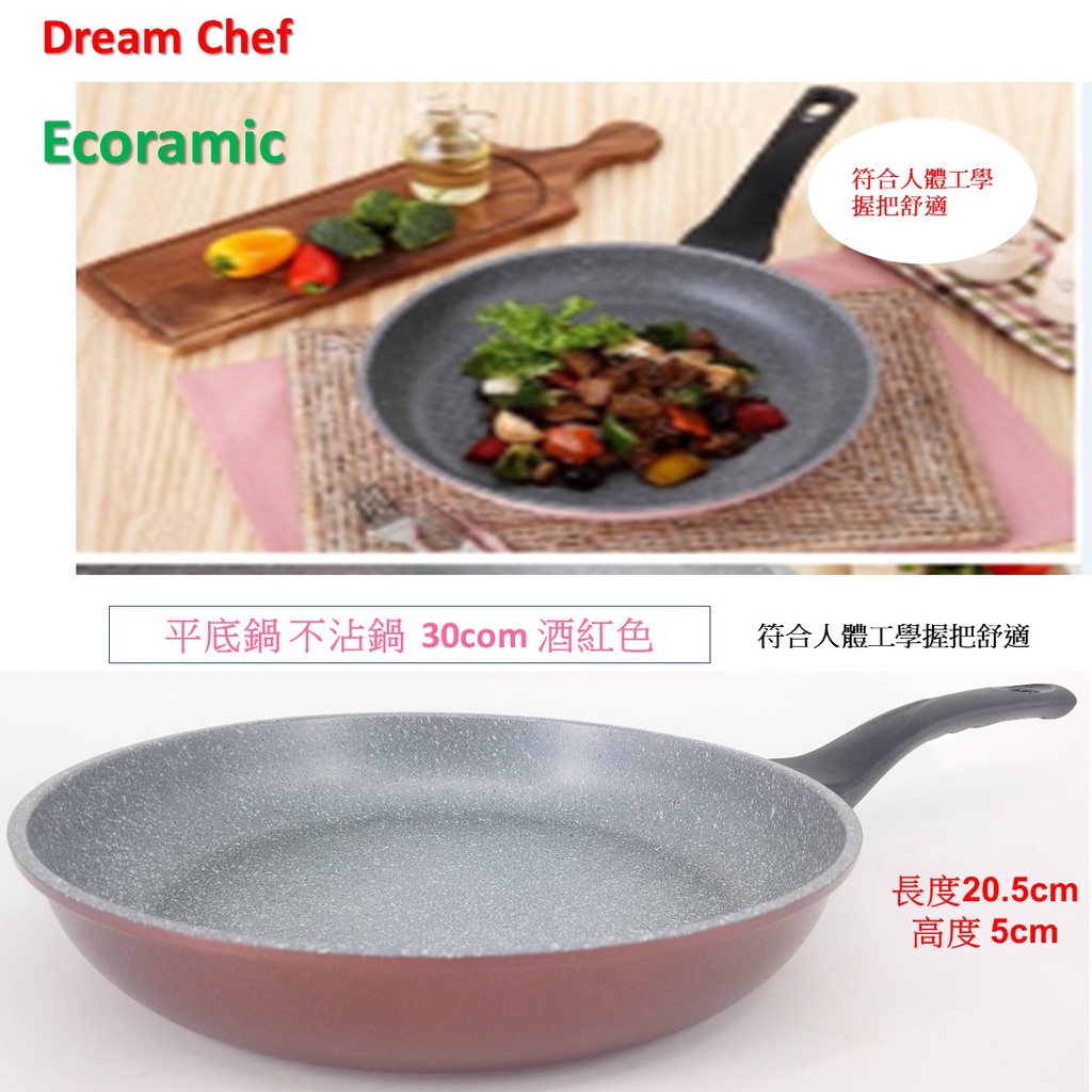 韓國Ecoramic鈦晶石頭抗菌不沾鍋 30cm 酒紅色平底鍋/鍋蓋【不適用電磁爐 IH爐]