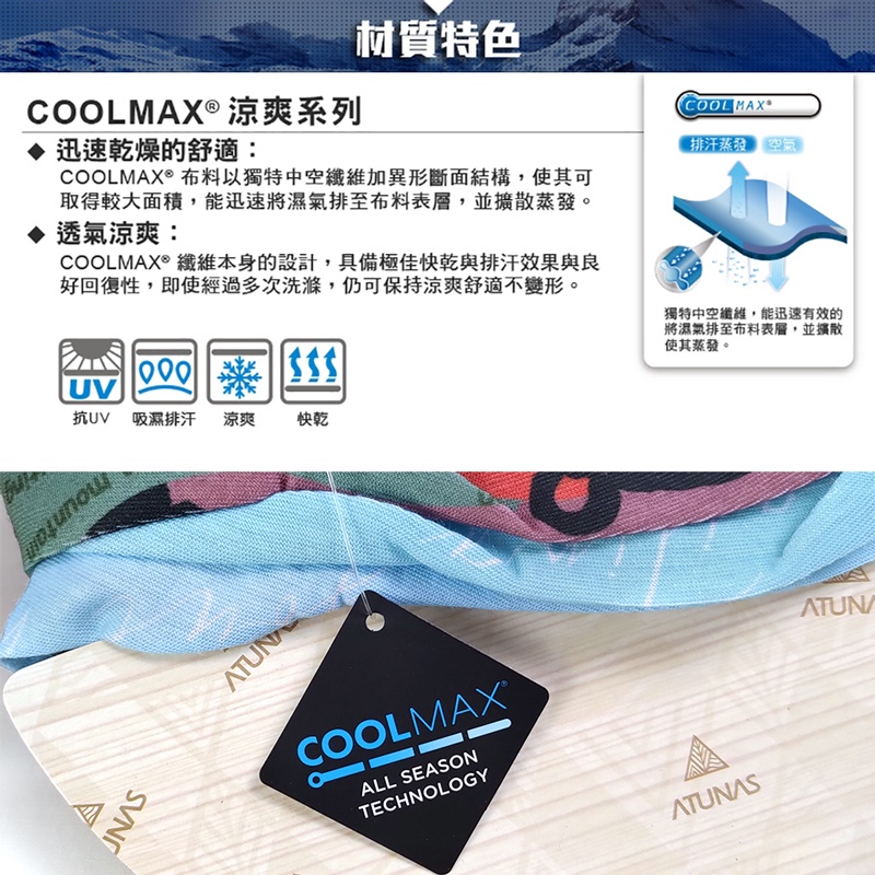 ATUNAS COOLMAX抗菌頭巾(頭套/歐都納/圍脖/吸濕排汗/台灣製/涼感)