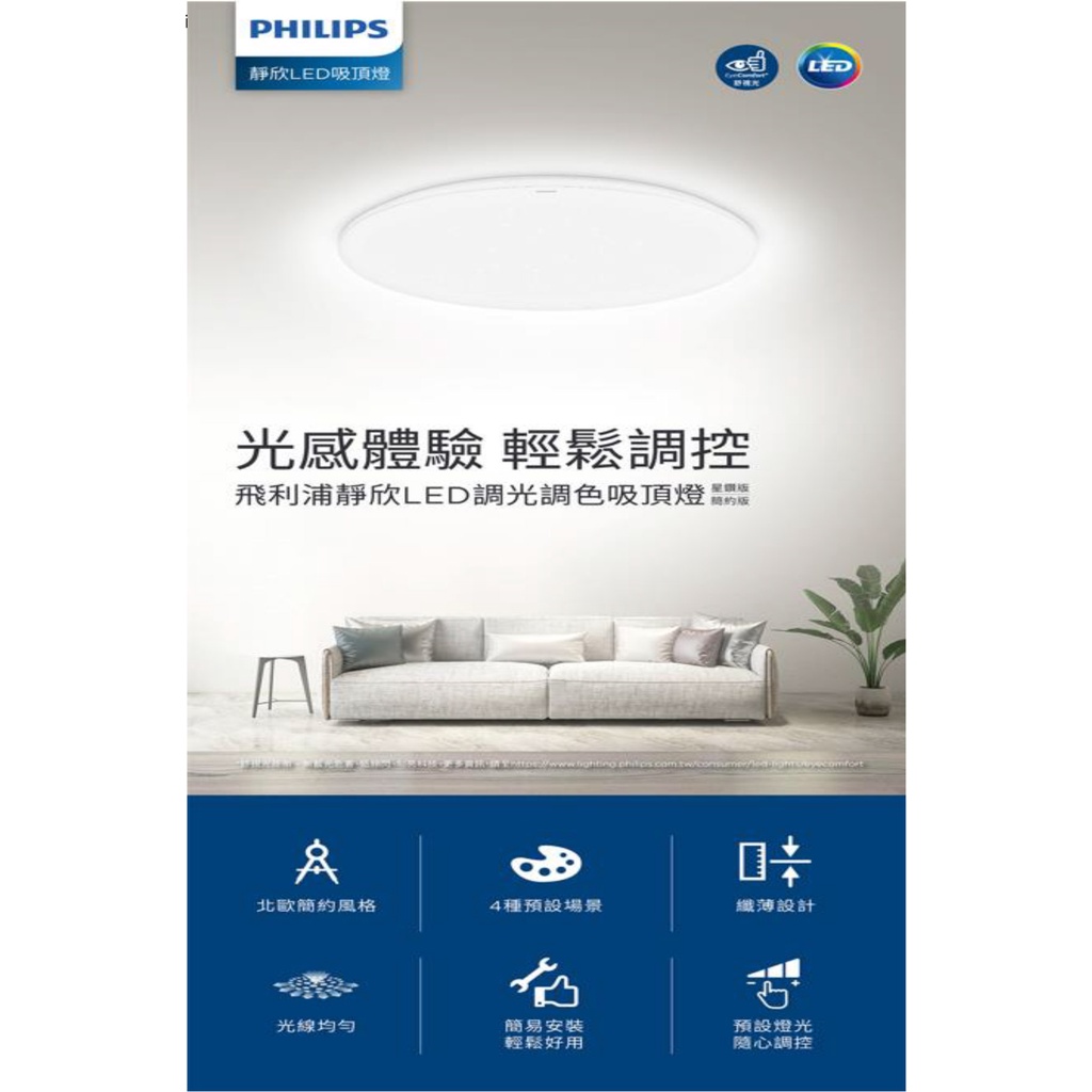 【登野企業】全新上市 飛利浦 靜欣 40W / 80W LED 調光調色 吸頂燈 星鑽版/簡約版