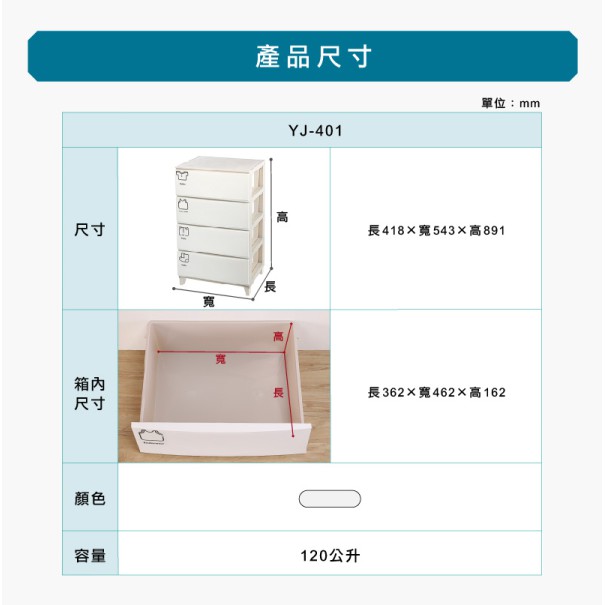 【收納世界BOXworld】YJ401伊利莎四層櫃(白) KEYWAY 聯府塑膠 台灣製造