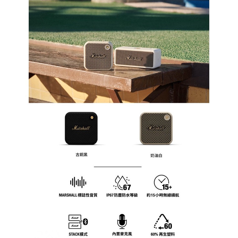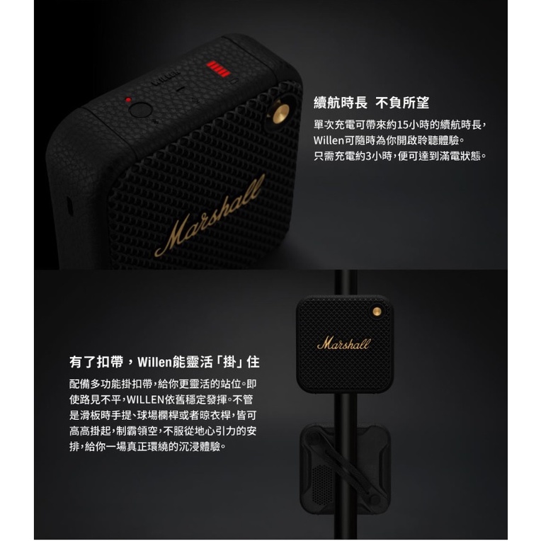 Marshall 攜帶式藍牙喇叭 【聊聊再折】WILLEN II 保固18個月 原廠公司貨