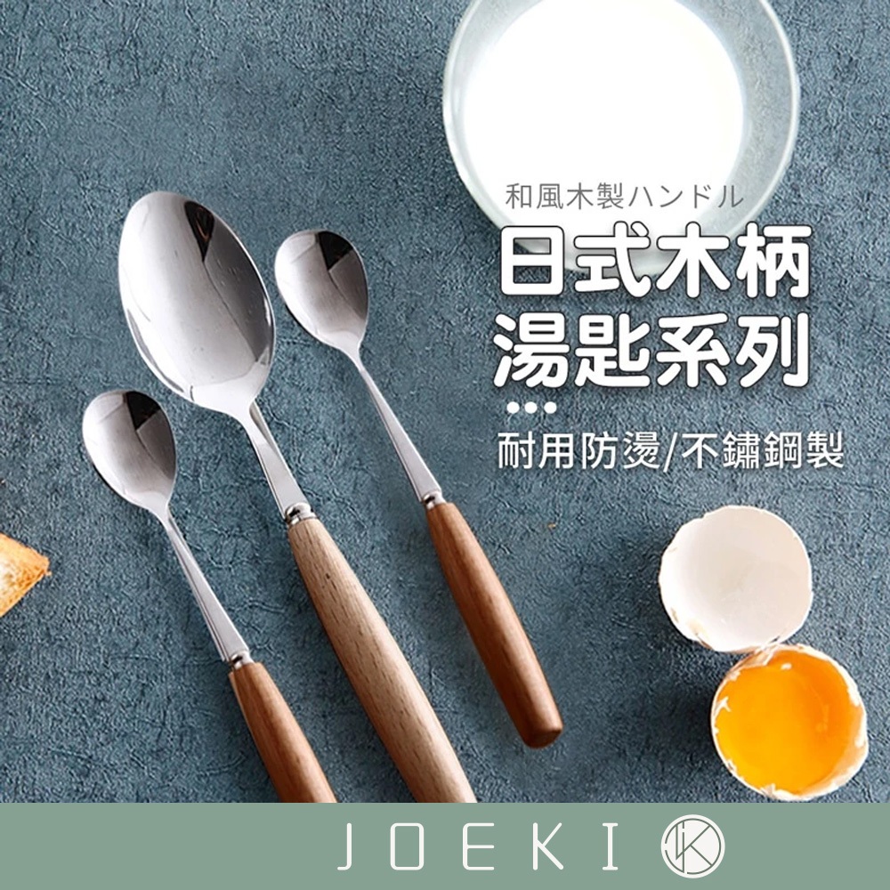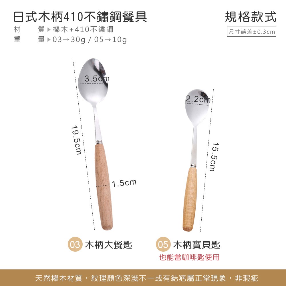日式木柄410不鏽鋼餐具 木柄不銹鋼餐具 木柄不銹鋼湯匙 大湯匙 小湯匙 餐具 不鏽鋼餐具【CC0079】