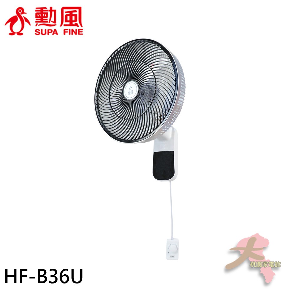 《大桃園家電館》SUPAFINE 勳風 14吋 無段速VR調整極能靜音DC直流壁掛扇 HF-B36U