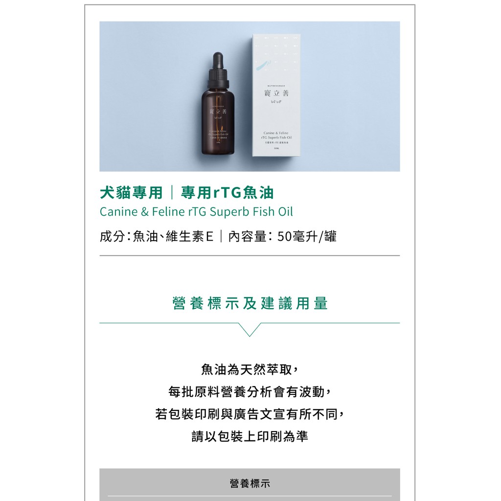 Natural10 寵立善 犬貓專用RTG超級魚油 50ml 超高濃度rTG滴管型機能魚油(OMEGA-3 皮膚毛髮保健