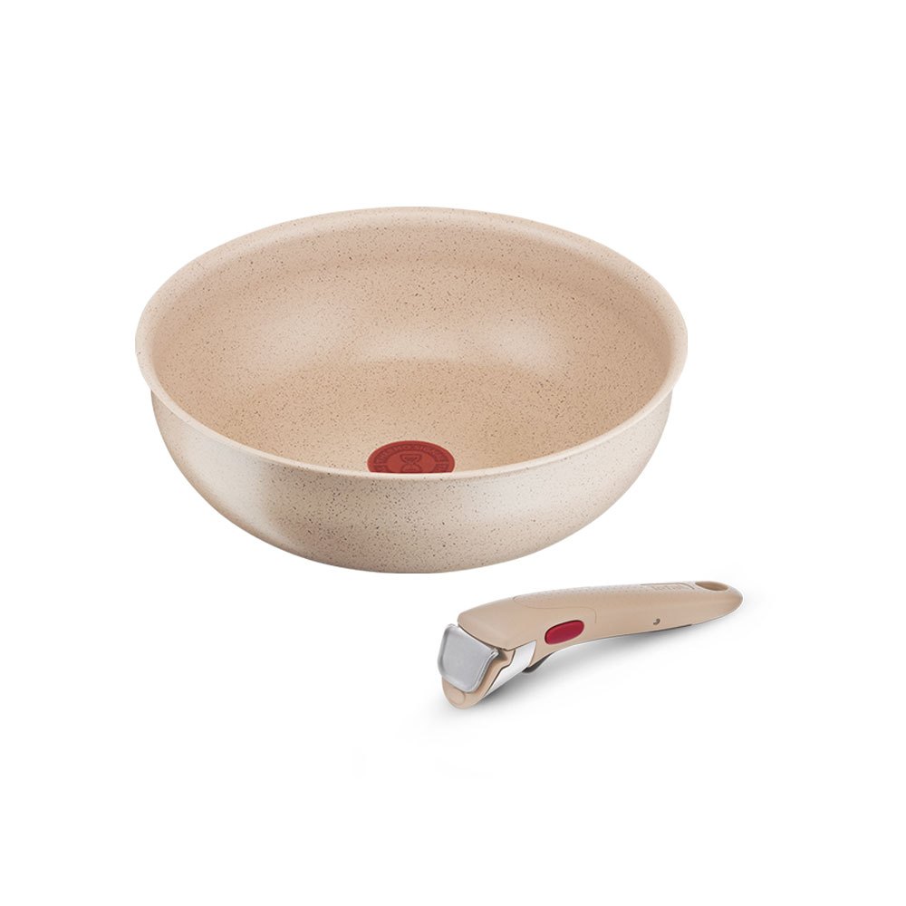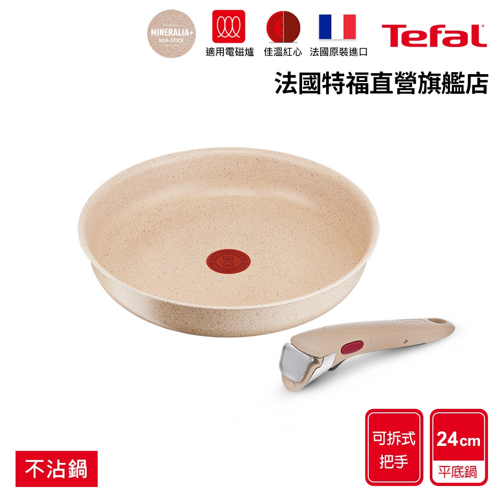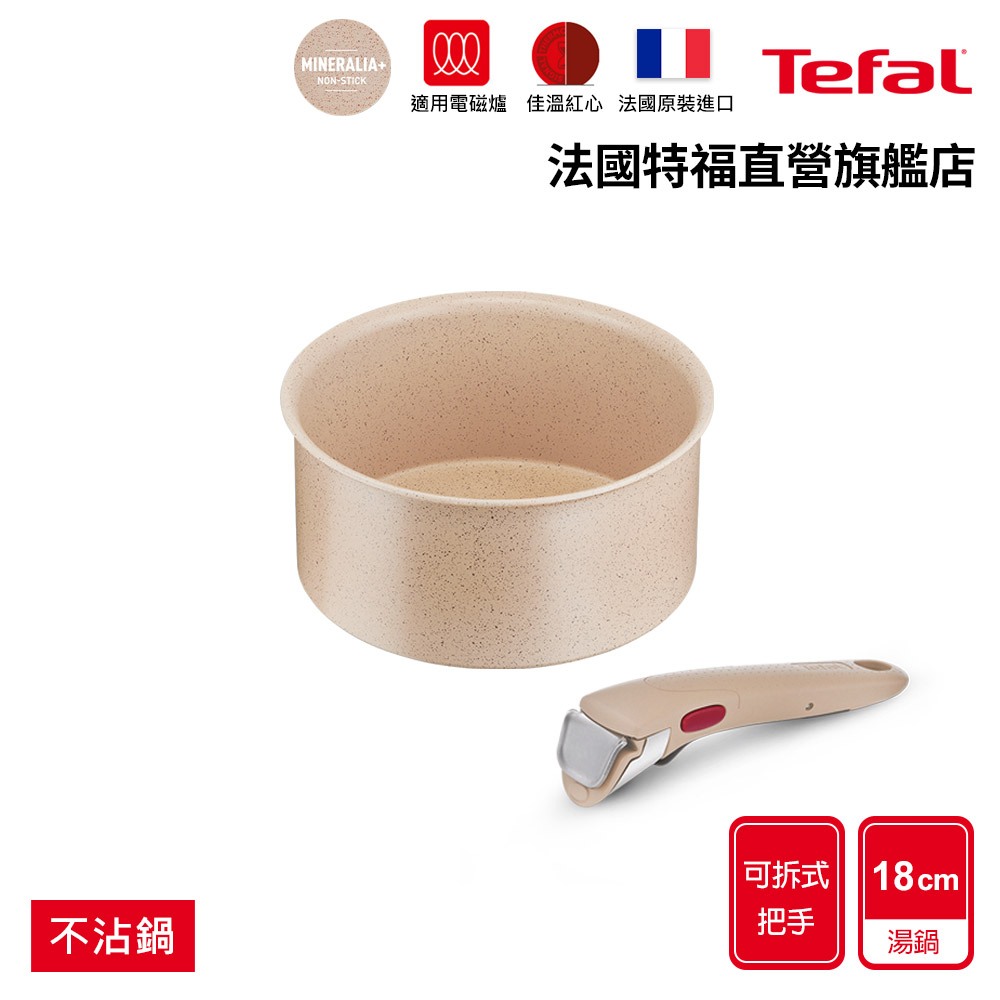 Tefal法國特福 巧變精靈不沾鍋2件組-奶茶粉(任選) 高硬度礦物添加 可拆式鍋具 IH、烤箱適用【送萬用刀】