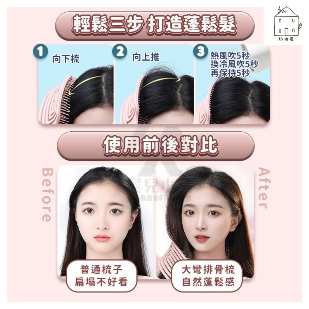 【台灣現貨】大彎排骨蓬松按摩氣墊梳 卷發造型頭皮按摩梳
