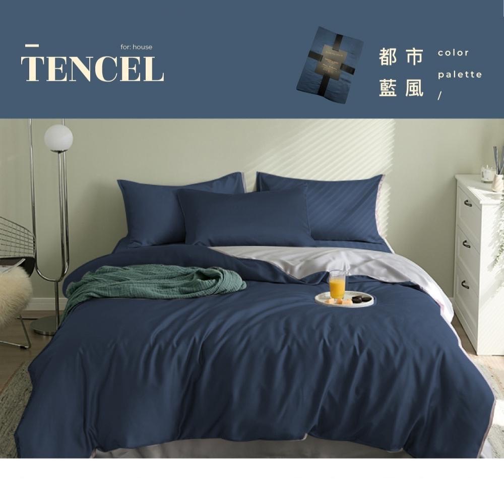【夢之語】60支 100%純天絲 兩用被床包 床包被套組(都市藍風) 雙人/加大/特大 床包/保潔墊/枕頭/暖暖被/純棉