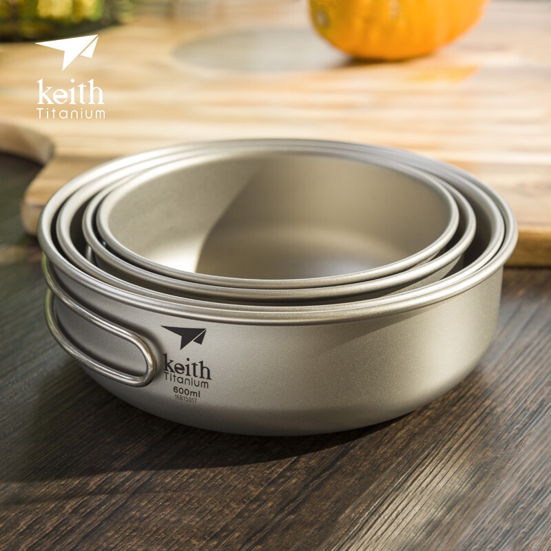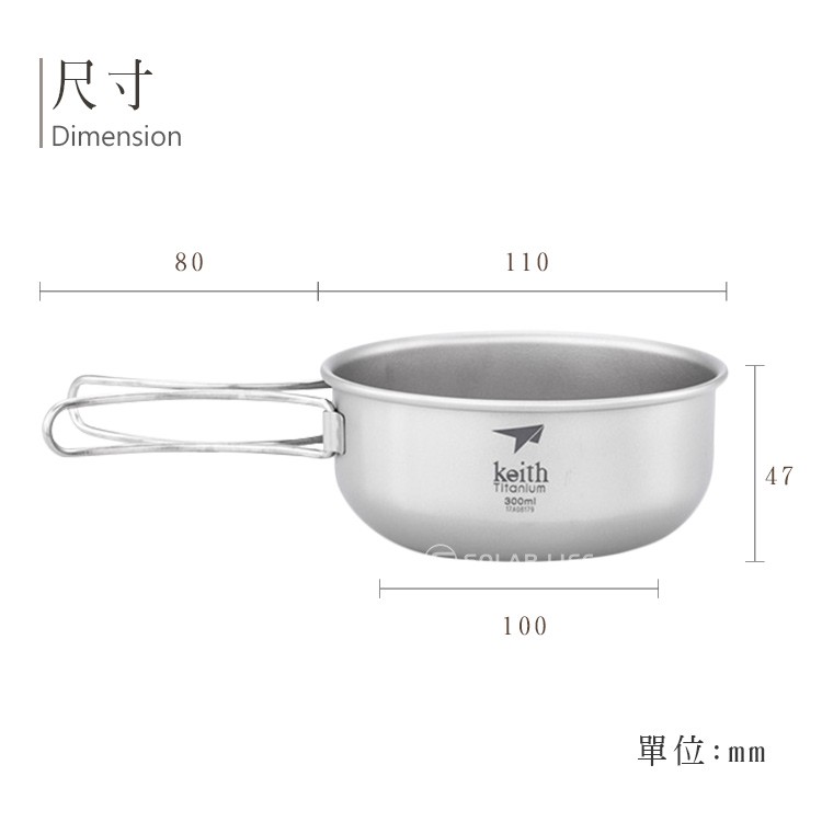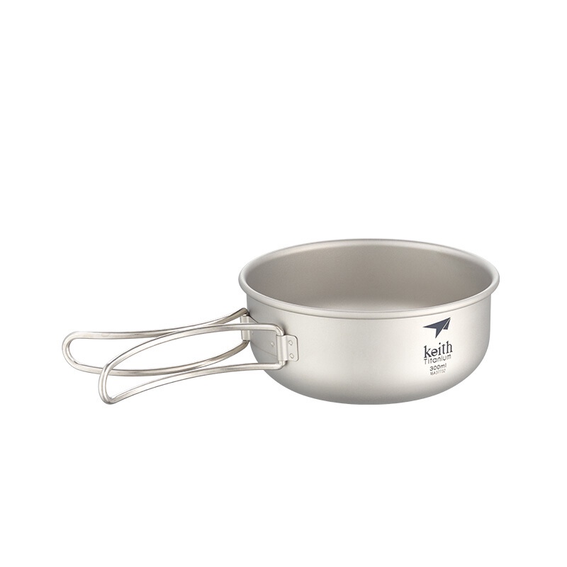 Keith 鎧斯純鈦輕量環保折疊握把湯碗 300ml Ti5323 鈦碗 戶外 露營碗 野炊 登山碗 可直火堆疊 摺疊碗