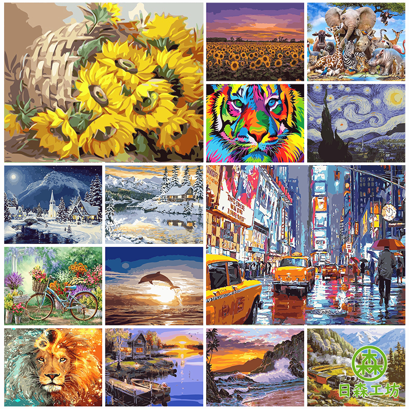 C系列【日森工坊】數字無框油畫 DIY油畫 40x50cm 客廳裝飾 紓壓 繪圖 著色 無框油畫 台灣現貨 隔日到貨