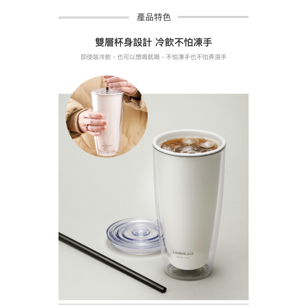樂扣樂扣-簡約雙層輕量大容量吸管杯/750ml/夏天必備/4色可選/贈吸管清潔刷/喝手搖飲超方便/可裝酸性飲品 交換禮物