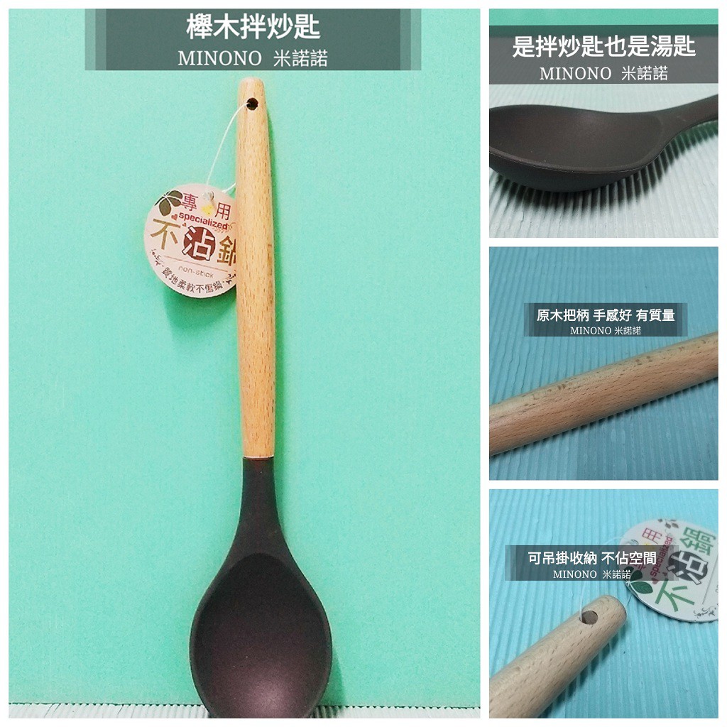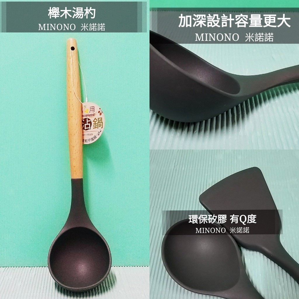 生活好物購 MINONO 米諾諾 不沾鍋櫸木矽膠料理用品 矽膠 鍋鏟 湯杓 湯匙 煎匙 漏煎匙 拌炒匙 菜匙 塑膠鍋鏟
