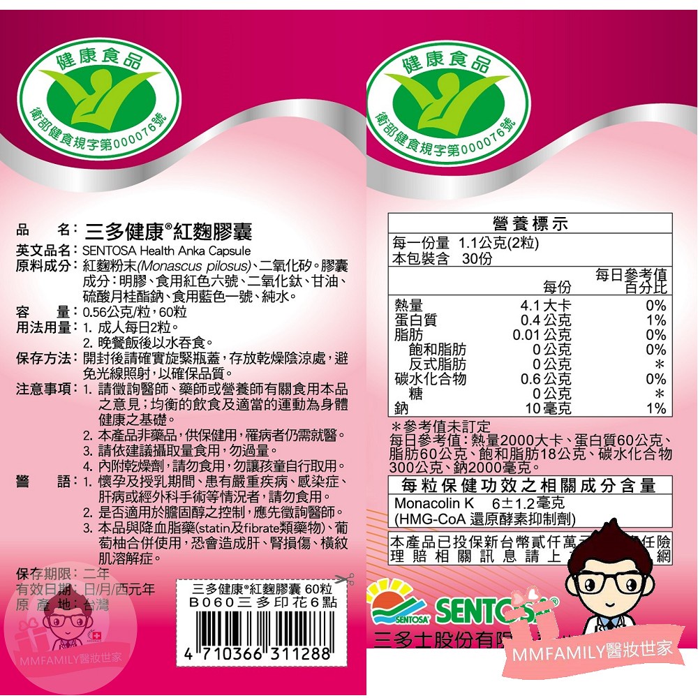 三多 健康紅麴膠囊 60粒【醫妝世家】 紅麴