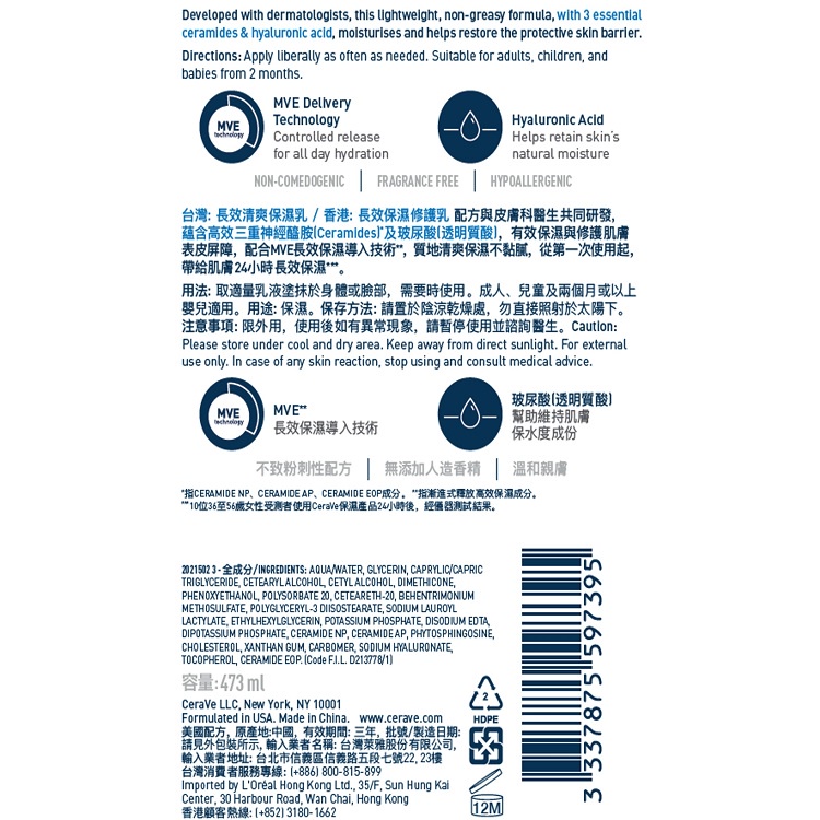 CeraVe 適樂膚長效清爽保濕乳 473ML