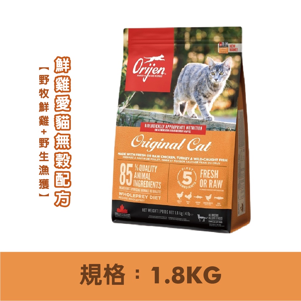 【亞米屋Yamiya】Orijen 歐睿健 無穀貓飼料 1KG / 5.4KG 全齡貓 野牧鮮雞 貓糧 挑嘴貓配方