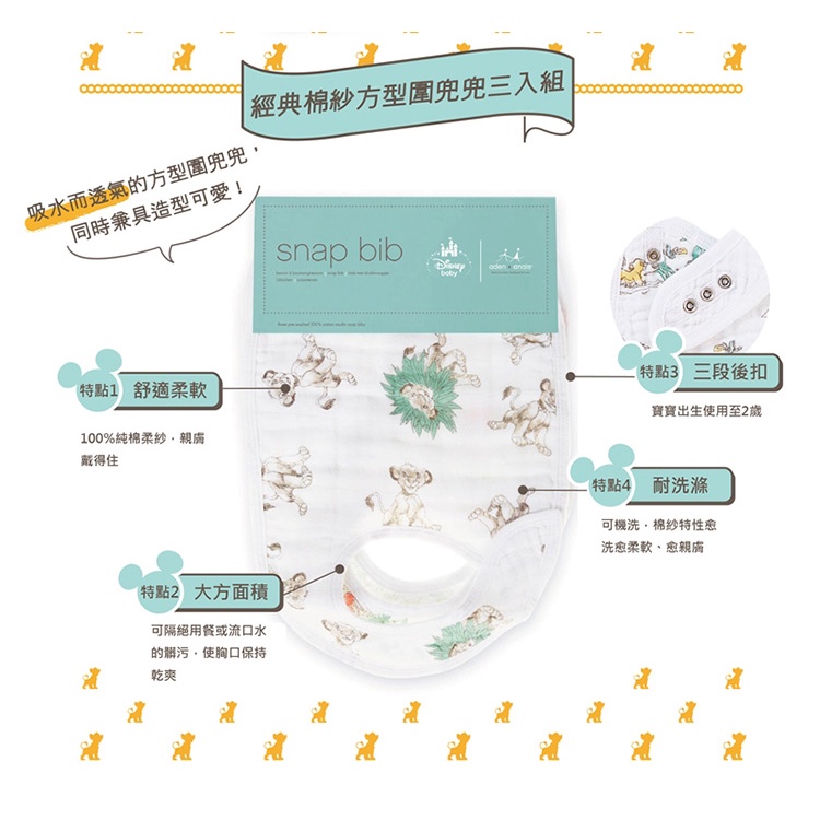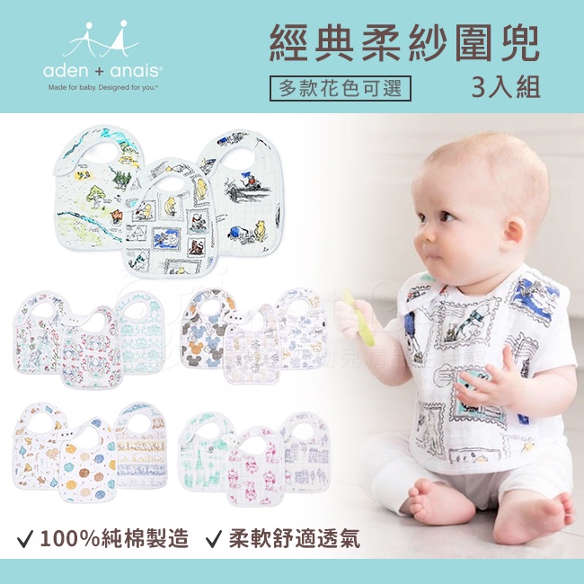 〈現貨〉美國Aden+Anais 柔紗方形圍兜/口水巾(3入) 透氣吸溼性佳 多款可選 ✿蟲寶寶✿