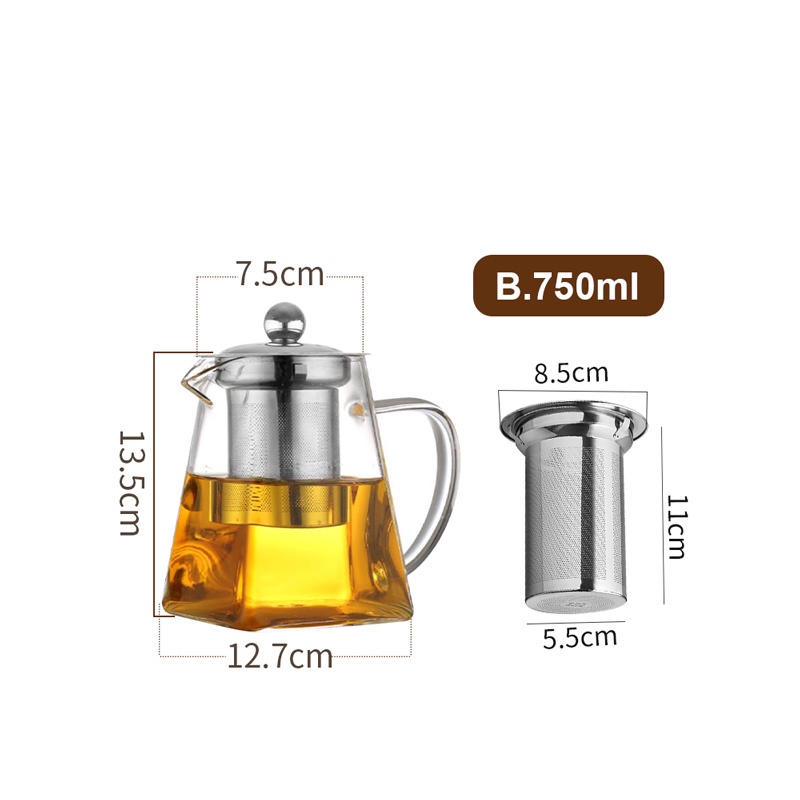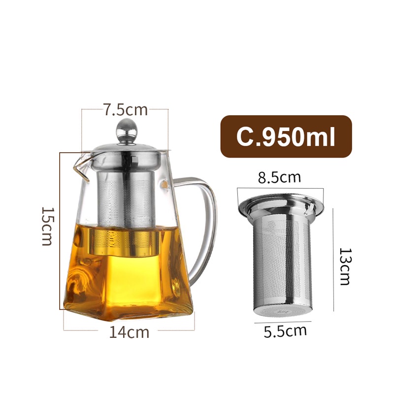 玻璃茶壶 方形過濾泡茶壺 高硼矽玻璃壺 大容量 耐熱 泡茶壺玻璃 玻璃