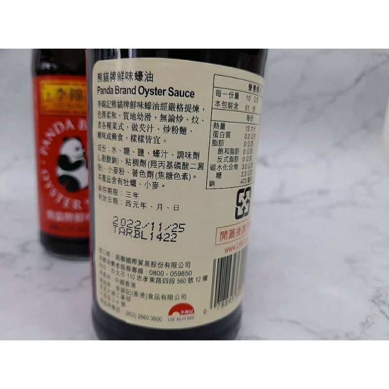 【良美商行】李錦記*熊貓鮮味蠔油/510g