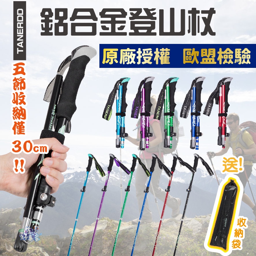 【★台灣發貨】TANERDD 登山杖 五節鋁合金款收納僅30公分+送收納袋 摺疊登山杖 折疊登山杖 伸縮登山杖
