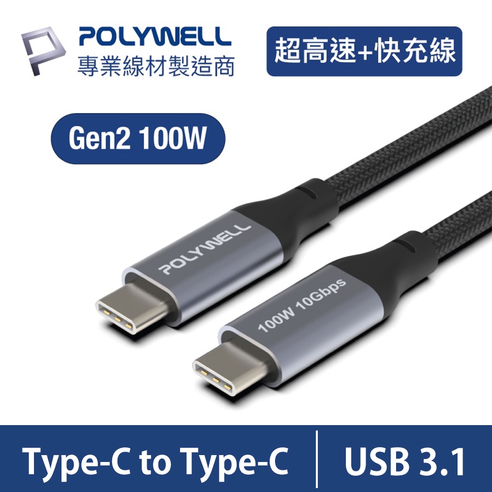 【POLYWELL】寶利威爾 USB3.1 Gen2 Type-C 5A高速充電線 快充線 傳輸線 安卓 PLB0008