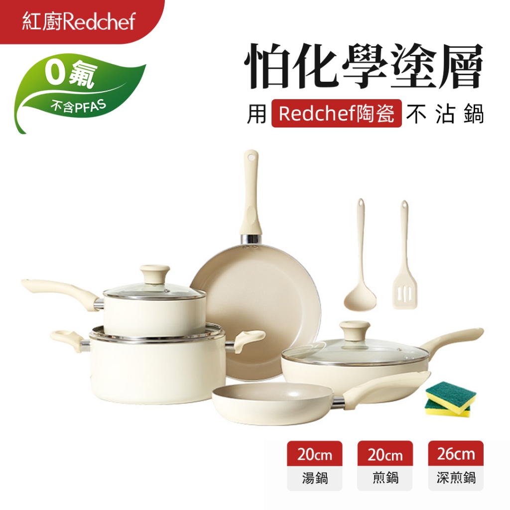 紅廚Redchef 陶瓷岩不沾鍋具12件組 26CM炒鍋/煎锅+24CM湯鍋+20煎锅+16CM泡麵鍋 IH電磁爐適用
