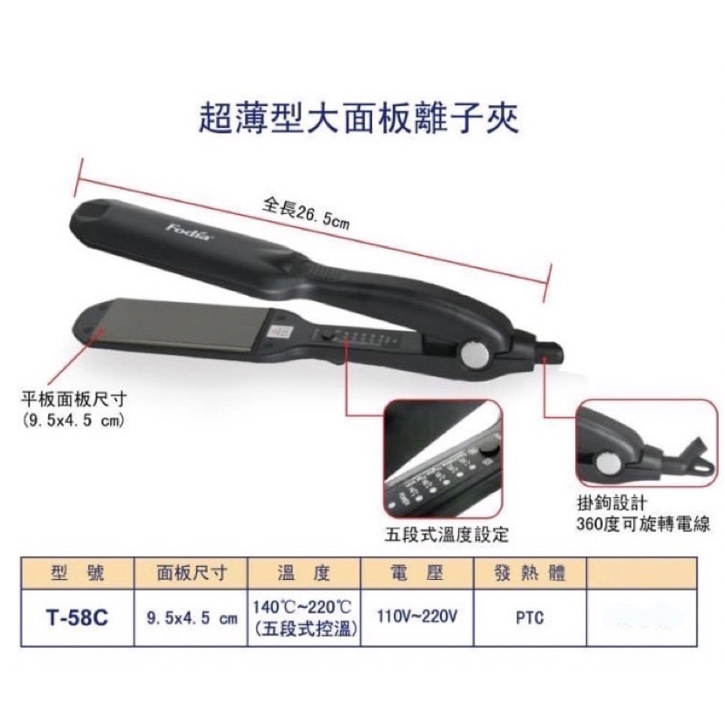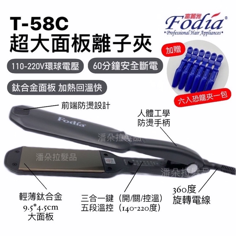 潘朵拉髮品 Fodia富麗雅 T-58C平板離子夾 環球電壓 離子夾 平板夾