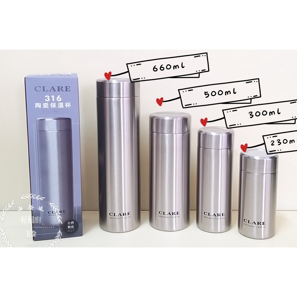 好相廚五金 台灣製 CLARE 316不鏽鋼 陶瓷保溫杯 不鏽鋼陶瓷保温杯 保温杯 保温瓶 陶瓷杯 陶瓷保溫瓶