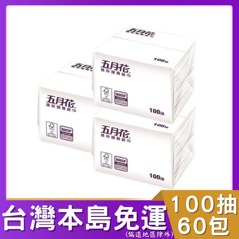 五月花 迷你摺疊紙巾100抽60包 FSC™驗證 HACCP # 五月花 迷你 摺疊 抽取 擦手紙 半張擦手紙