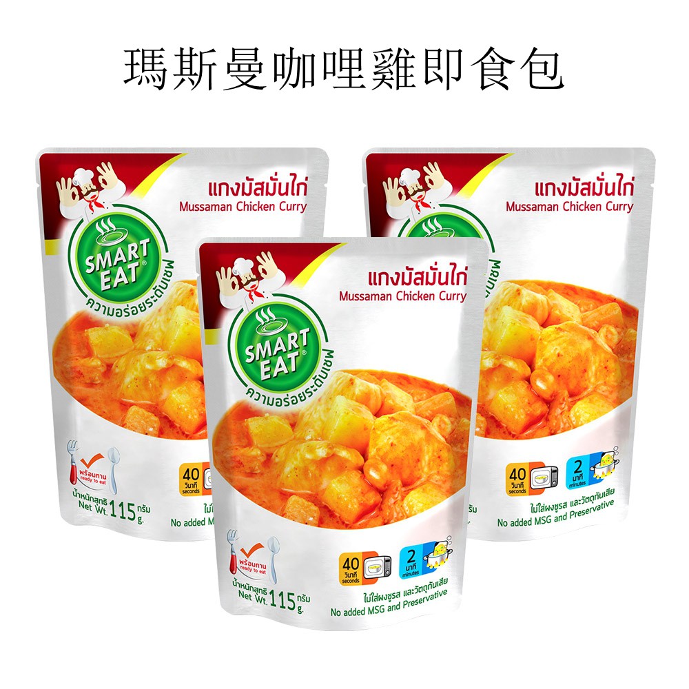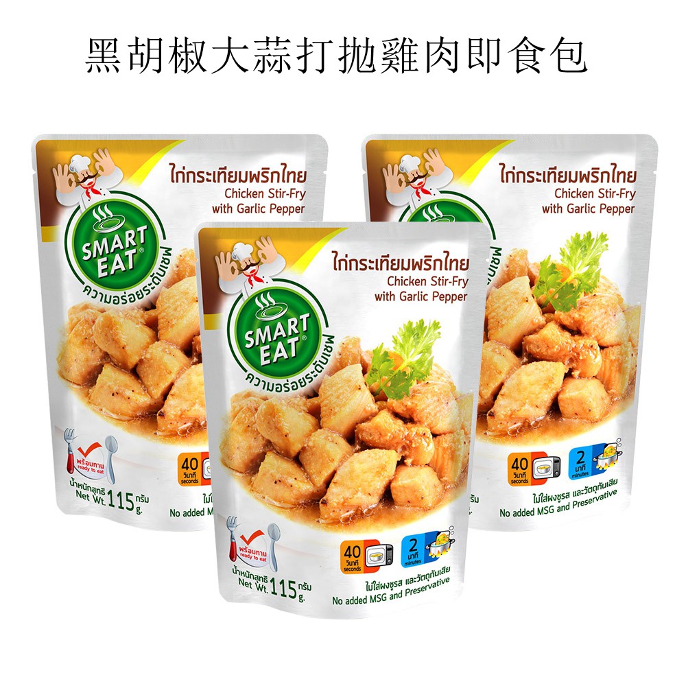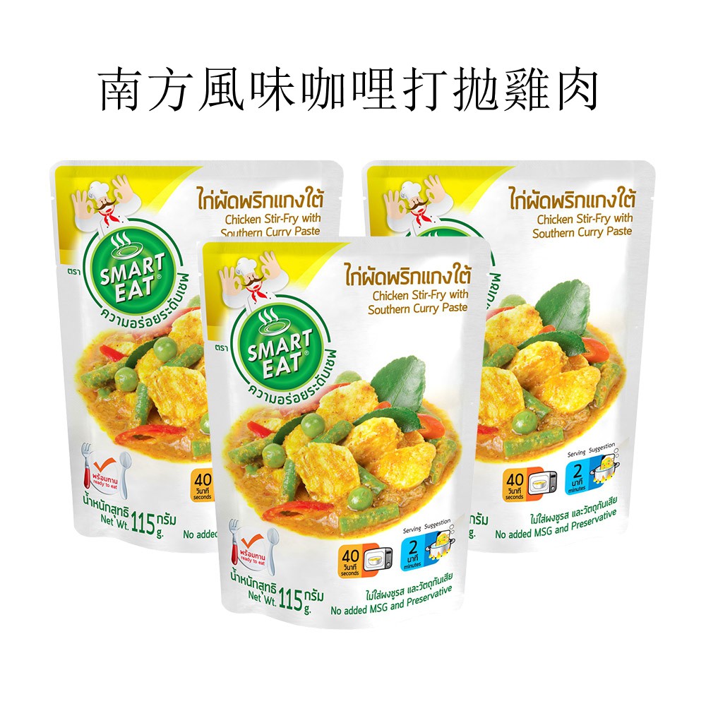 Smart Eat 黑胡椒大蒜打拋雞肉 泰式燉雞 南方風味咖哩打拋雞 瑪斯曼咖哩雞 帕能咖哩雞 即食包