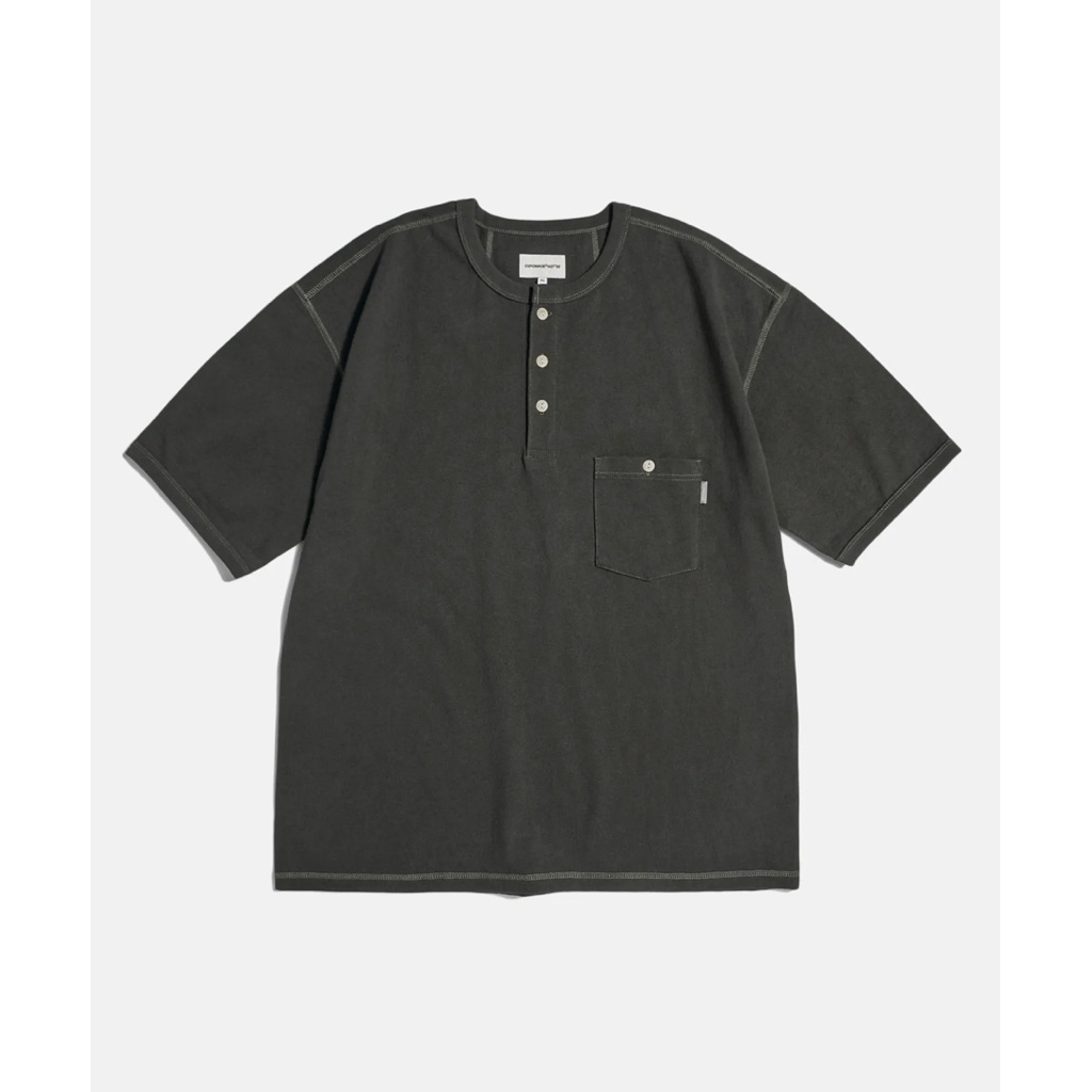 韓國品牌 ESPIONAGE 復古寬款亨利領口袋T卹