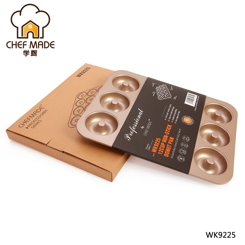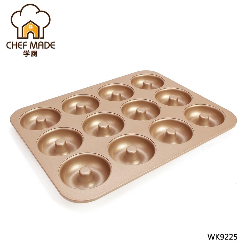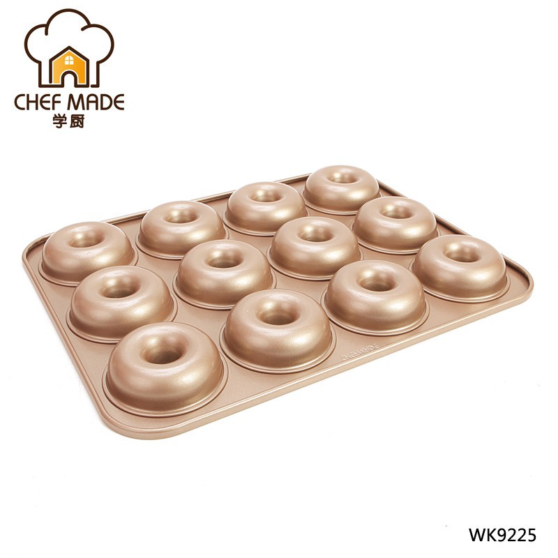 Chefmade學廚12連杯甜甜圈蛋糕烘焙模具金色不沾曲奇餅乾模12連蛋糕模不沾甜甜圈模WK9225