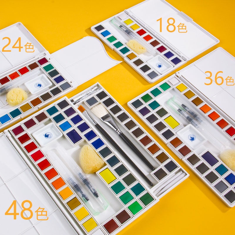 山川☃馬利牌24色固體水彩顏料套裝初學者手繪36色48色透明水彩顏料18色