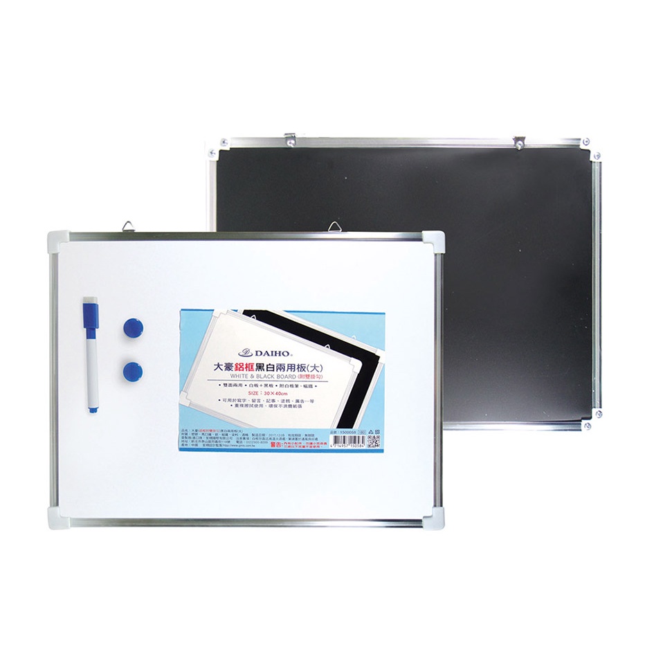 DAIHO大豪 鋁條附掛鉤黑白二用板/磁性兩用板(黑板+白板) 4種尺寸(小、中、大、加大)白黑板 荃翔/筌翔
