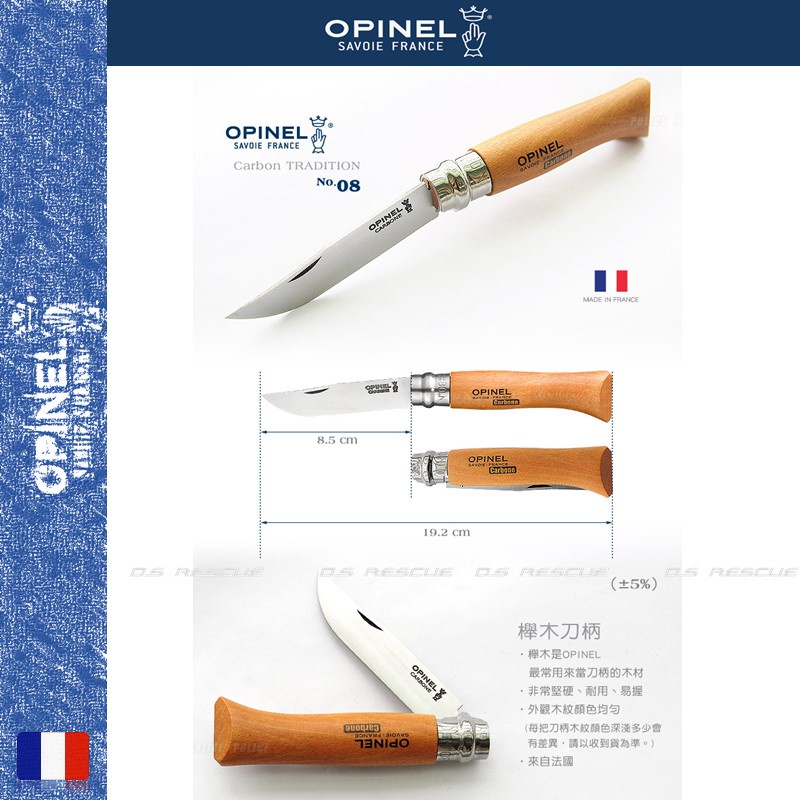 【EMS軍】法國OPINEL No.08碳鋼折刀/櫸木刀柄(公司貨)#113080