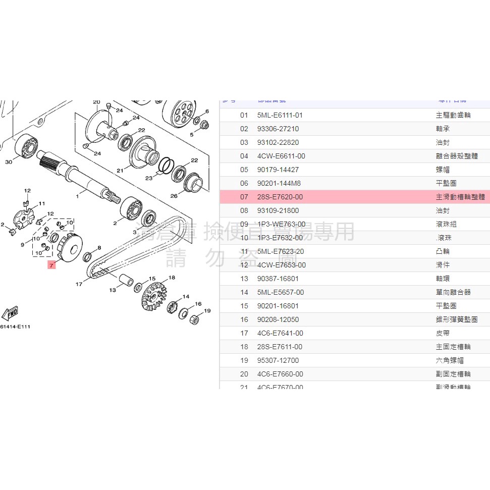 清倉庫 料號:28S-E7620-00 YAMAHA山葉原廠 主滑動槽輪整體 普利盤 勁戰三代 3代戰