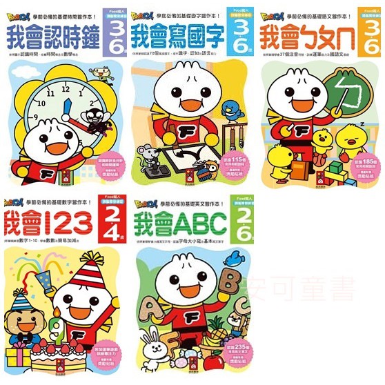 **安可童書** 我會ABC/我會123/我會ㄅㄆㄇ/我會認時鐘/我會寫國字/FOOD超人頭腦開發練習