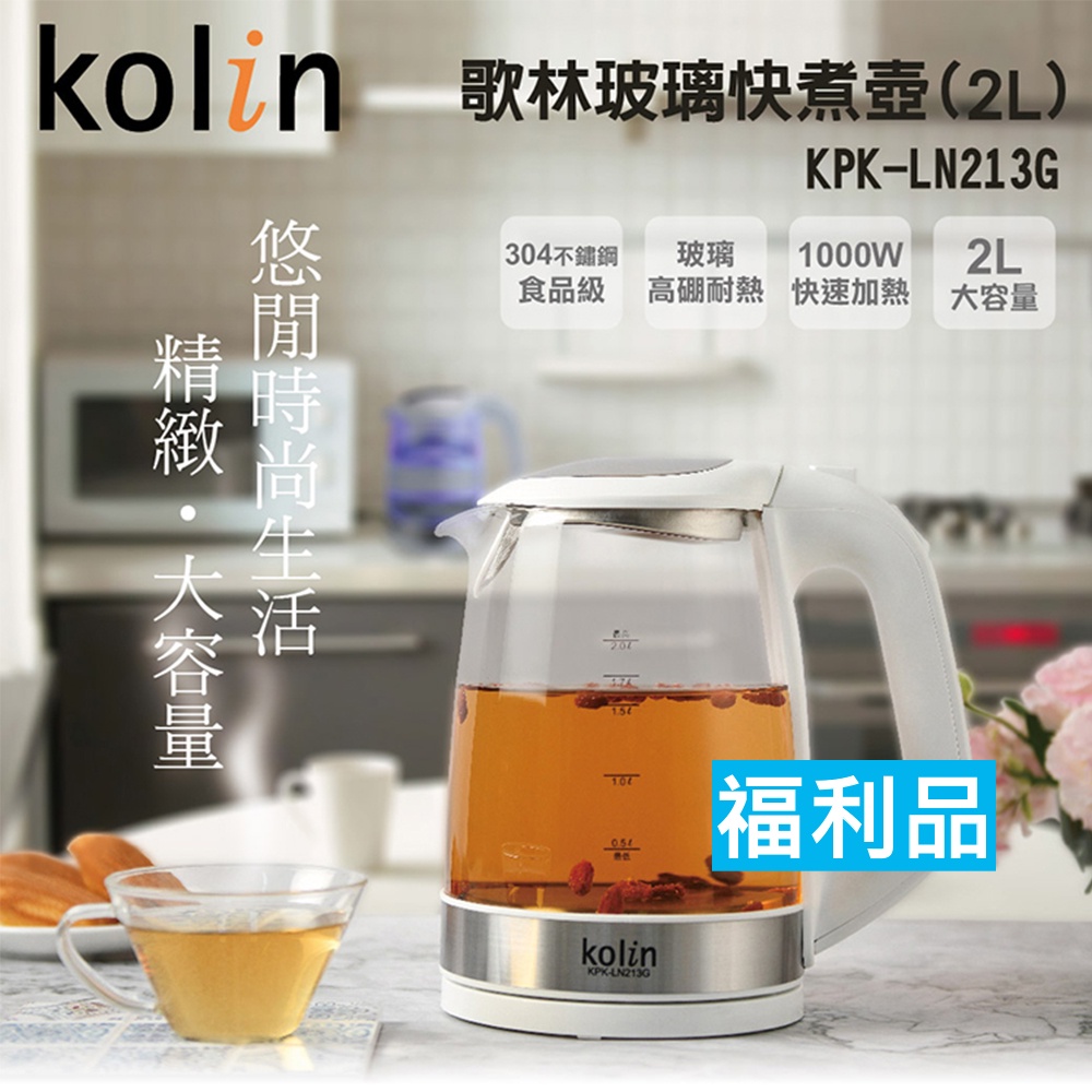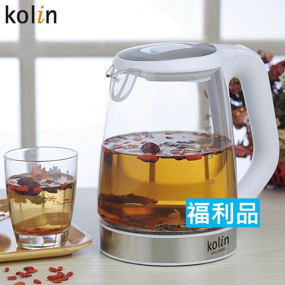 福利品【歌林】2.0L玻璃快煮壺 2公升 熱水壺 電茶壺 電熱水壺 泡茶壺 花茶壺 快煮壺KPK-LN205G