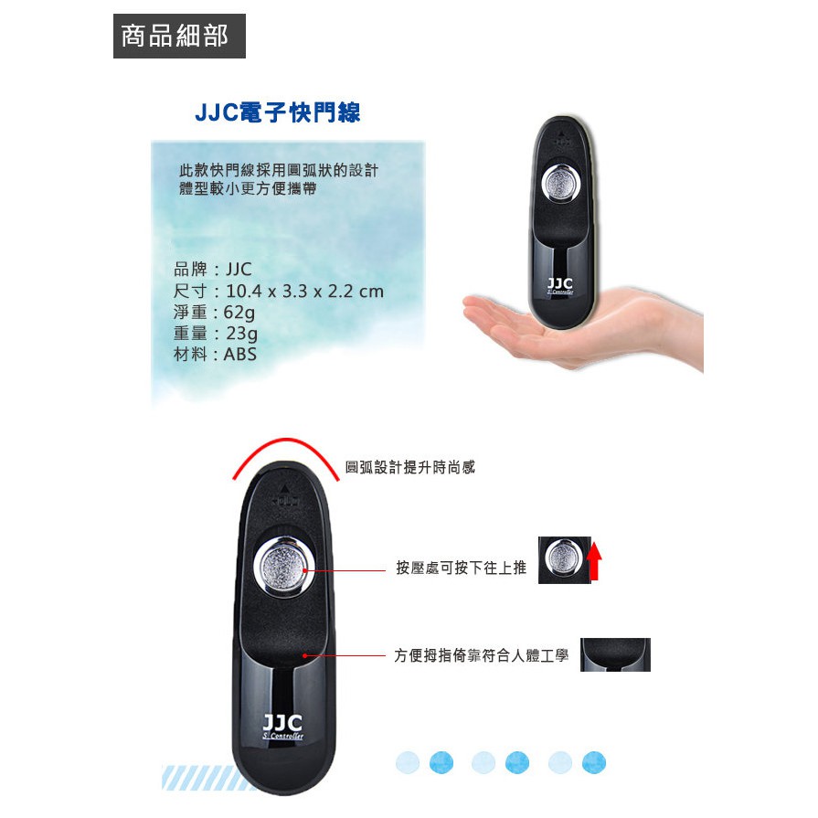 JJC S系列快門線 按鈕處按下往前推 圓弧設計更時尚 背處凹槽方便食指依附