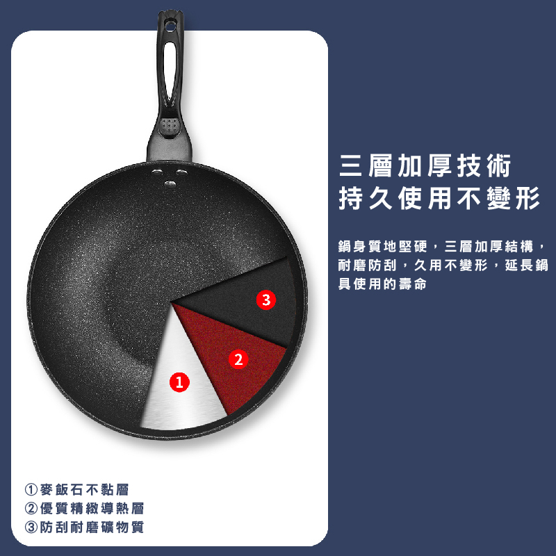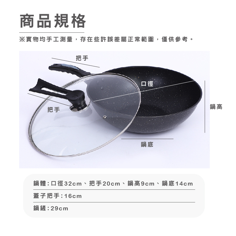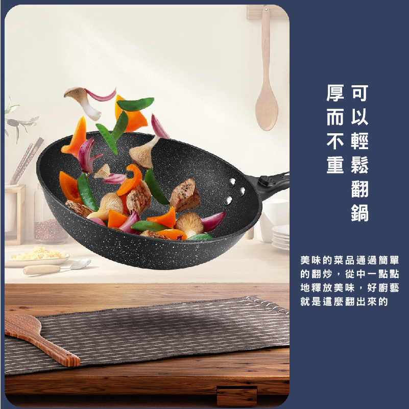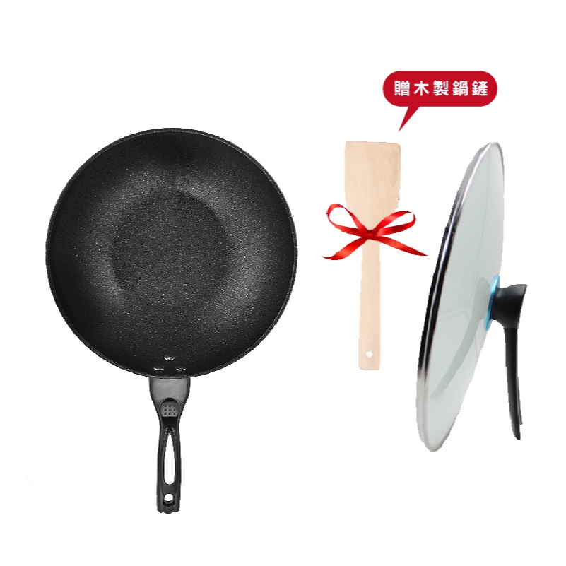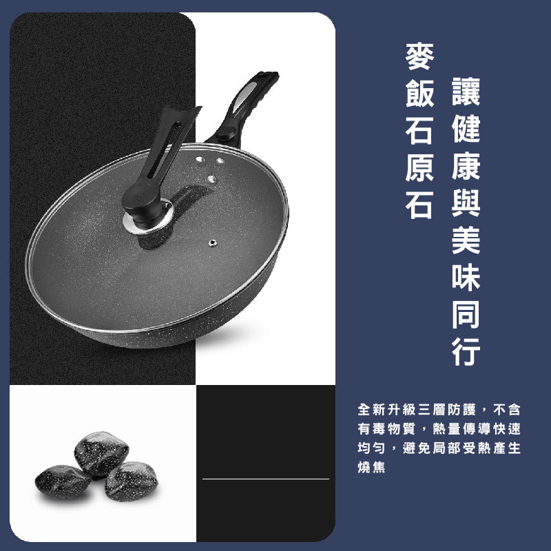 台灣發貨_HA019 外銷款麥飯石不沾鍋 炒鍋 炒菜鍋 32CM 平底鍋 麥飯石煎鍋 不沾鍋 電磁爐瓦斯爐通用 送木鏟